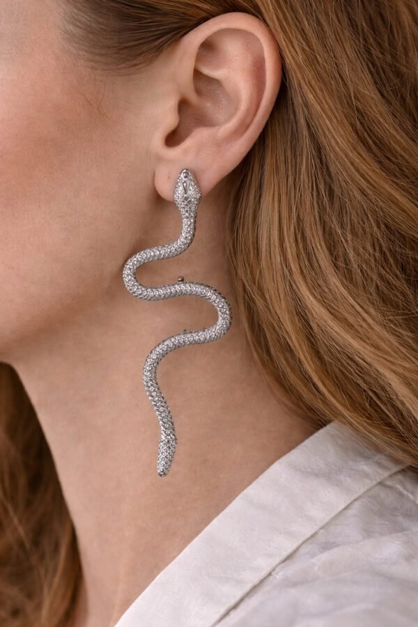 Striking stainless steel earrings in a modern snake design with textured detailing. Bold and elegant, they wrap beautifully around the ear, adding a strong statement touch to any outfit. Hypoallergenic and durable, perfect for both everyday wear and evening looks.